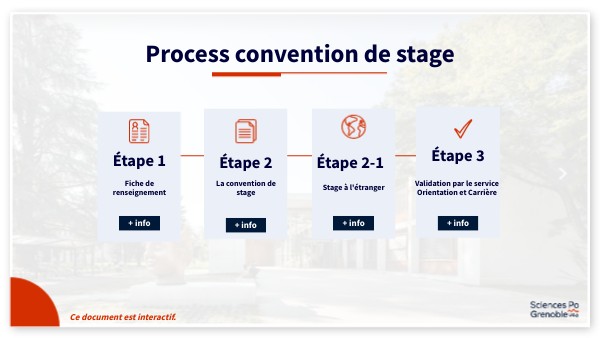 Une fois votre formulaire de convention validé par le Service Orientation et Carrières, vous recevrez un mail vous indiquant les étapes à suivre pour télécharger et faire signer votre convention.