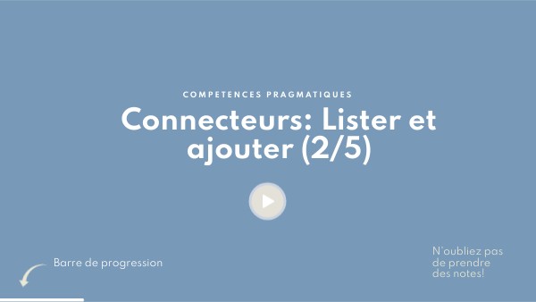 NEXT Ensuite Indique la prochaine étape logique du plan. First, look at your day so you know what you're dealing with. Secondly, update your planner so you know what's happening. Thirdly, answer the messages from your group before they panic. Good. Take a breath. Then you can focus on the text for tomorrow. Next, prepare the slides—you promised you'd do it.. Première étape: elle s'organise. Prochaine étape logique: elle prépare le diaporama.