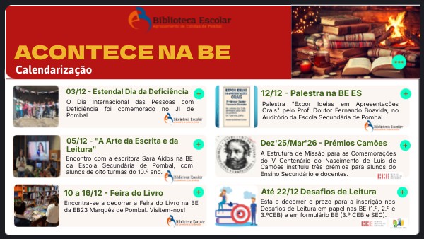 O AE Pombal mantém o programa de leitura que aumenta os hábitos de leitura e a melhoria das competências de compreensão e expressão nas modalidades oral, escrita e multimodal .