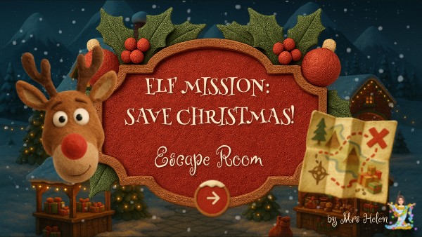 The 'ELF MISSION:SAVE CHRISTMAS' escape room was created in December 2025 by Eleni Malliakou (English Language Teacher), as part of the semester assignment for the module "Emerging Web Technologies and Digital Games" of the Postgraduate Program 'Digital Humanities' of the Hellenic Open University's (HOU).