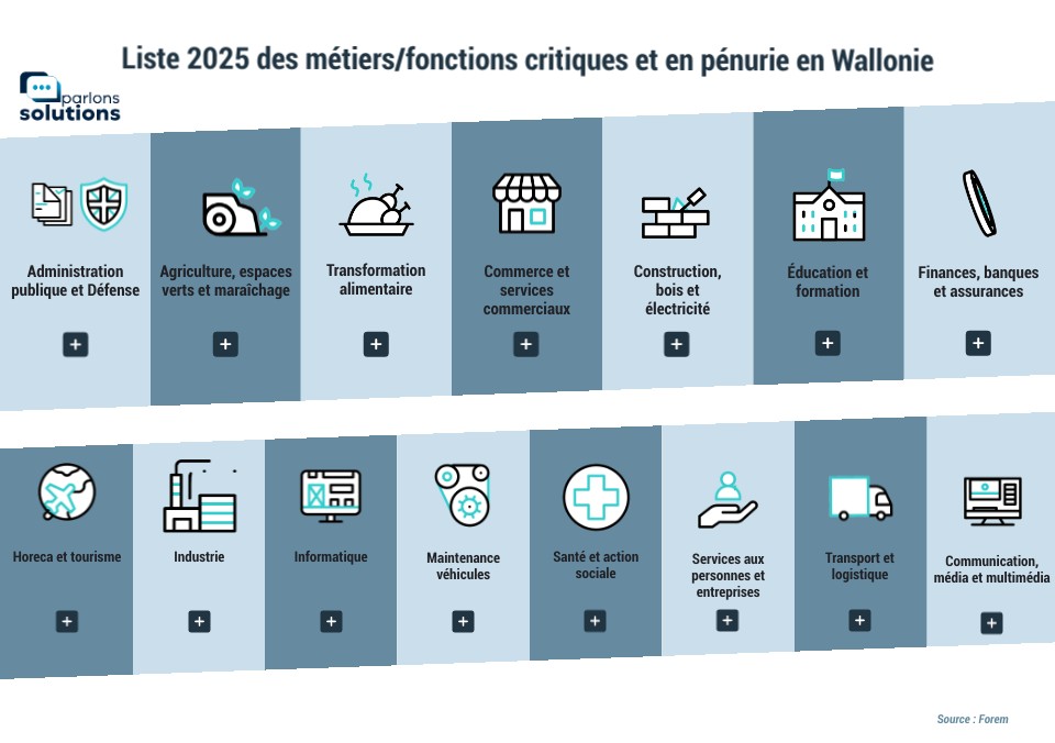Liste 2025 des métiers/fonctions critiques et en pénurie en Wallonie