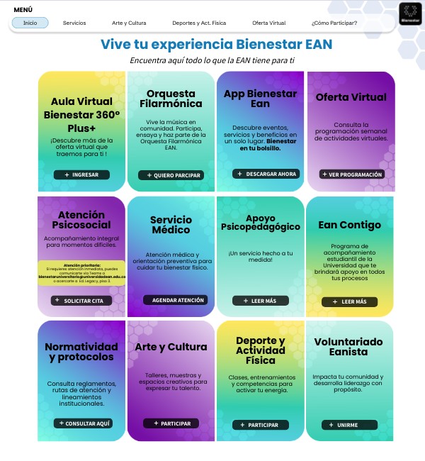 Landing Page, Bienestar Ean 2026