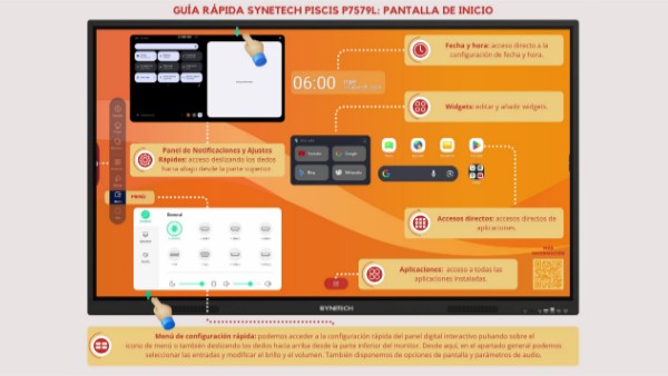 Ventana con todas las aplicaciones instaladas en el monitor. En la parte superior aparecen las abiertas recientemente. Si mantenemos pulsado sobre ellas, se abre un globo con información de la aplicación, y en algunas de ellas nos permite tener la pantalla dividida con dos aplicaciones abiertas de forma simultánea.