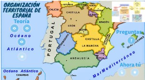 Preguntas de la organización territorial de España1. Respecto a Europa, ¿en qué punto cardinal se sitúa España? 2. El territorio de España lo forma… 3. ¿Cómo pueden ser los límites entre países? 4. ¿Con qué limita España por el norte? 5. ¿Con qué limita España por el sur? 6. ¿Con qué limita España por el este? 7. ¿Con qué limita España por el oeste? 8. ¿Cómo se organiza el territorio de España?