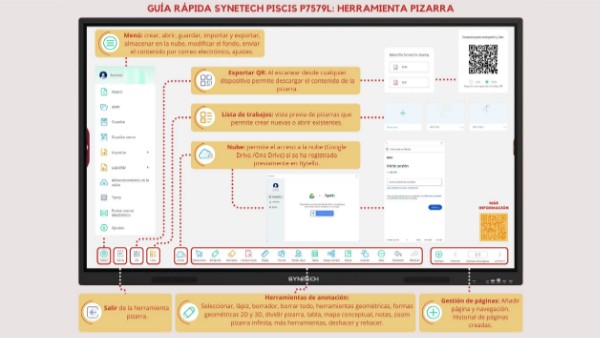 Vamos a poder exportar a través de un código QR que genera el programa, todas las páginas creadas con la pizarra en formatos: PNG o PDF.