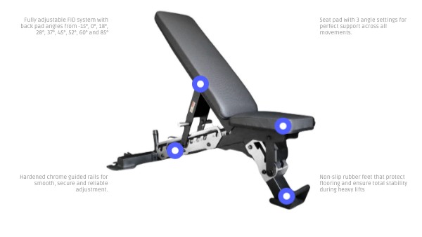 Seat pad with 3 angle settings for perfect support across all movements.