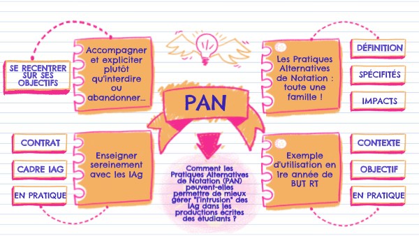 Il n'y a pas UNE façon d'intégrer les PAN dans ses enseignements mais de multiples. Il s'agit avant tout de se recentrer sur ses objectifs d'apprentissage pour concevoir un système de notation cohérent avec ses attentes et capable de prendre en compte le contexte spécifique des étudiant.e.s (en lien avec l'IAg ainsi que toutes les spécificités individuelles et multiples de chacun).