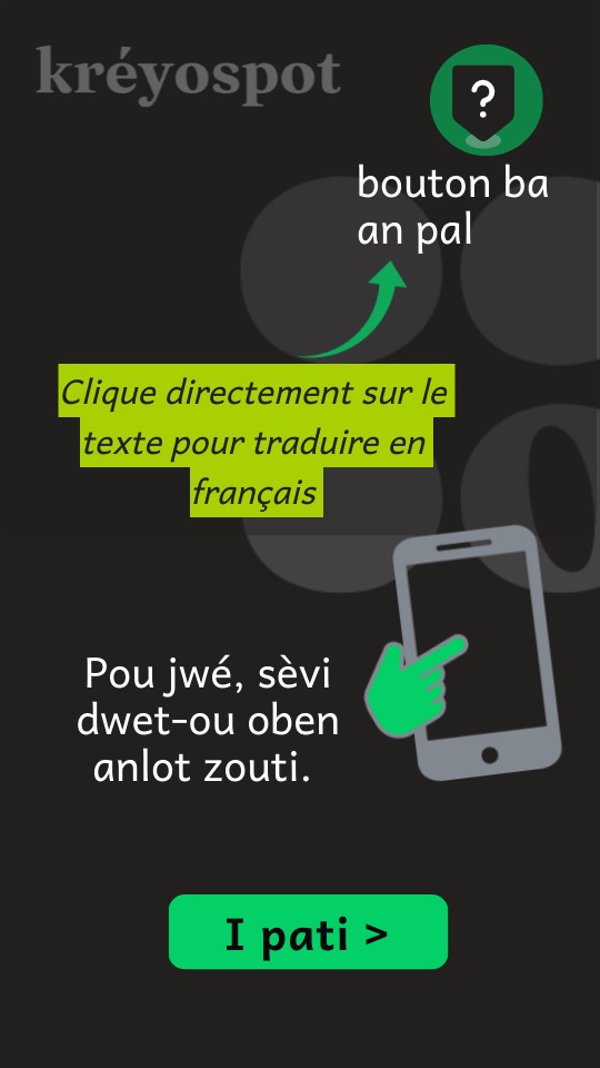 Tu peux appuyer sur le bouton vert "ba lidé'w" pour revenir au site kréyospot ou le bouton vert "viré jwé" pour recommencer une partie.