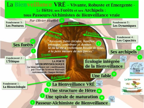 La Bienveillance VRÉ est une approche de la bienveillance qui ne relève ni de l’injonction morale ni du sacrifice de soi (bien souvent silencieux), ni sur une posture naïve ou bisounours. Elle est Vivante, Robuste et Émergente. Elle s’appuie sur une compréhension fine des dynamiques biologiques, relationnelles et collectives qui rendent la bienveillance possible, durable et régénérative. Elle part d’un constat simple : la bienveillance ne se décrète pas. Elle émerge lorsque les conditions du vivant sont réunies, faisant de la biologie et la neuro-physiologie un élément central de la compréhension des ressorts de la bienveillance. Cela met en évidence le rôle central de notre Système Nerveux Autonome (SNA). Le fondement premier de la bienveillance est ainsi biosociologique.