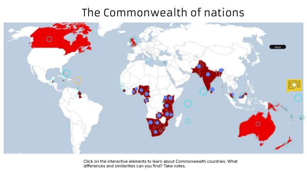 Click on the interactive elements to learn about Commonwealth countries. What differences and similarities can you find? Take notes.