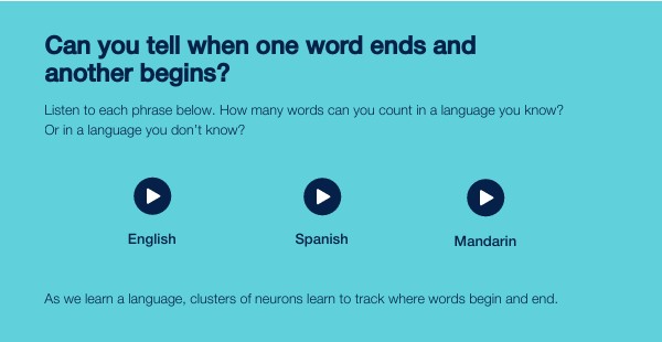 Listen to each phrase below. How many words can you count in a language you know? Or in a language you don’t know?