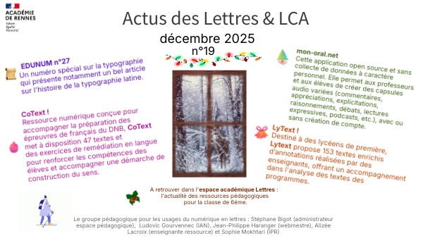 A retrouver dans l'espace académique Lettres : l'actualité des ressources pédagogiques pour la classe de 6ème.