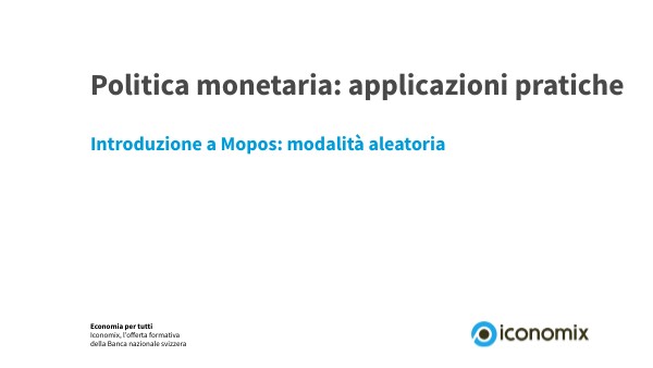 Nota: occorre distinguere la politica monetaria convenzionale, attuata mediante la manovra del tasso di interesse, dalle misure non convenzionali, quali ad esempio gli interventi sul mercato dei cambi.Introduzione a Mopos: modalità aleatoria | © www.iconomix.ch
