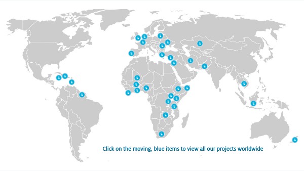Click on the moving, blue items to view all our projects worldwide