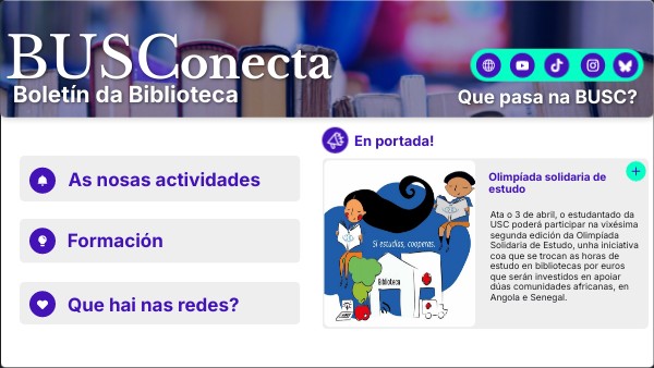 Ata o 3 de abril, o estudantado da USC poderá participar na vixésima segunda edición da Olimpíada Solidaria de Estudo, unha iniciativa coa que se trocan as horas de estudo en bibliotecas por euros que serán investidos en apoiar dúas comunidades africanas, en Angola e Senegal.