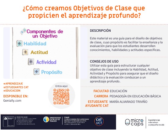 DESCRIPCIÓN Este material es una guía para el diseño de objetivos de clase, cuyo propósito es facilitar la enseñanza y la evaluación para que los estudiantes desarrollen conocimientos, habilidades y actitudes específicas.