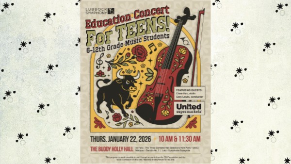 Ask your teacher for the discount code to get two free tickets to the full performance of today's pieces. Visit lubbocksymphony.org for tickets and more information!