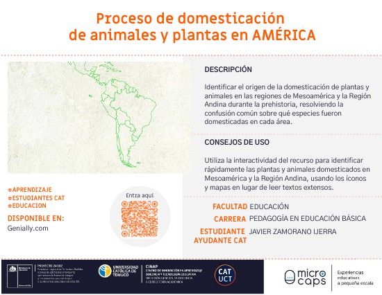 CONSEJOS DE USO Utiliza la interactividad del recurso para identificar rápidamente las plantas y animales domesticados en Mesoamérica y la Región Andina, usando los íconos y mapas en lugar de leer textos extensos.