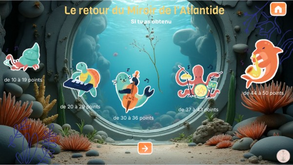 Il semble que les sbires du roi Anguille t'aient choisi comme nouveau souverain … et ce n’est pas un hasard : ta capacité à t’ajuster, à garder ton calme dans la tempête et à apprendre de chaque vague fait de toi un·e véritable maître·sse des profondeurs en matière d’adaptabilité !