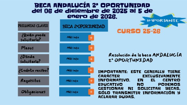 IMPORTANTE: ESTE GENIALLY TIENE CARÁCTER EXCLUSIVAMENTE INFORMATIVO. EN EL CENTRO EDUCATIVO NO PODEMOS GESTIONAR NI SOLICITAR BECAS, SÓLO TRANSMITIR INFORMACIÓN Y ACLARAR DUDAS.