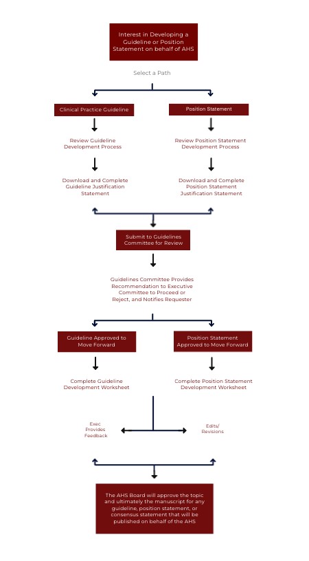 The AHS Board will approve the topic and ultimately the manuscript for any guideline, position statement, or consensus statement that will be published on behalf of the AHS