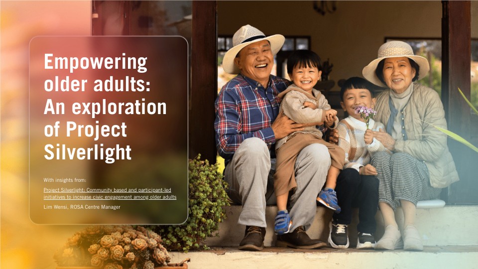 With insights from: Project Silverlight: Community based and participant-led initiatives to increase civic engagement among older adults Lim Wensi, ROSA Centre Manager