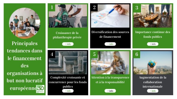 Les financements gouvernemen-taux provenant de l'UE et de sources nationales restent l'une des principales sources de revenus pour les organisations à but non lucratif, notamment dans des sec-teurs tels que l'inclusion sociale, la durabilité environnementale et l'aide humanitaire.