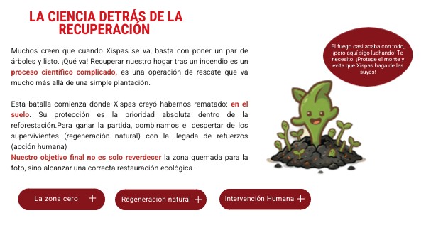Muchos creen que cuando Xispas se va, basta con poner un par de árboles y listo. ¡Qué va! Recuperar nuestro hogar tras un incendio es un proceso científico complicado, es una operación de rescate que va mucho más allá de una simple plantación. Esta batalla comienza donde Xispas creyó habernos rematado: en el suelo. Su protección es la prioridad absoluta dentro de la reforestación.Para ganar la partida, combinamos el despertar de los supervivientes (regeneración natural) con la llegada de refuerzos (acción humana) Nuestro objetivo final no es solo reverdecer la zona quemada para la foto, sino alcanzar una correcta restauración ecológica.