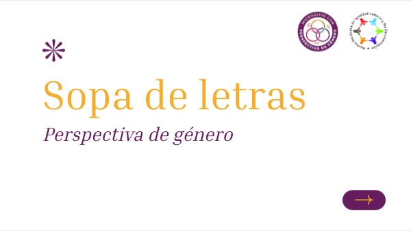 Encuentra las 6 palabras ocultas relacionadas con la perspectiva de género, herramienta clave para visibilizar el androcentrismo, la discrminación y los privilegios que pertetúan la violencia de género.A través de la sororidad y el respeto es posible crear relaciones justas e igualitarias que hacen frente a estas actitudes.