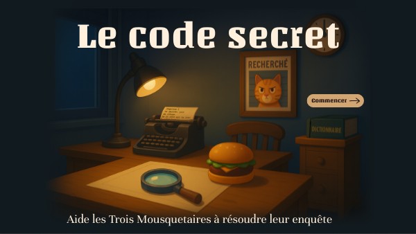 Les Trois Mousquetaires ont besoin de toi ! Le professeur Jarnigoine leur a envoyé un message codé, mais pour le comprendre, il faut résoudre trois énigmes liées à un cambriolage dans un chalet de la région de Shédiac. Chaque bonne réponse révèle un symbole. Réunis-les pour découvrir le code secret, déchiffrer le message et le livrer aux Trois Mousquetaires.