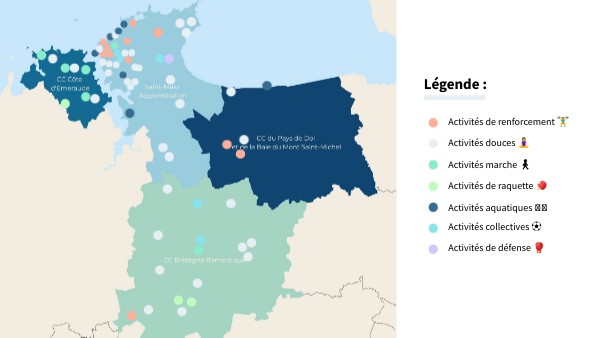 Adresse :Octopus Sport et Santé, 5 rue du Clos de la Poterie, 35430 Saint Jouan des Guerêts Description : Structure : Octopus Sport Public : Adultes, Personnes âgées, Personnes avec des maladies chroniques Créneau : Mercredi de 9h30-10h30 Contact : domi.robin@orange.fr Infos supplémentaires : Tenue confortable, chaussures d'intérieur ou pratique en chaussettes, bouteille d'eau