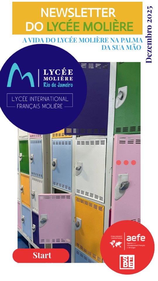 Desejo, para o restante do meu mandato, contribuir para fortalecer todas essas belas dimensões que fazem a identidade do Lycée Molière: a qualidade de nossos projetos, a excelência de nossas equipes, o compromisso com o desenvolvimento sustentável e essa incrível diversidade cultural que nos une. O novo projeto pedagógico da instituição, do qual toda a comunidade escolar participará, será o instrumento para alcançar esse objetivo. Por fim, gostaria de destacar os resultados notáveis de nossos alunos, em especial no Baccalauréat. Seu sucesso é fruto de seu esforço, mas também do engajamento incansável de seus professores e do acompanhamento de suas famílias. A cada um deles, dirijo minhas mais calorosas felicitações e meus votos de sucesso nos caminhos que estão prestes a trilhar. Desejando a todos excelentes festas de fim de ano, Atenciosamente, Cyril Mergnat Diretor do Lycée Internacional Molière