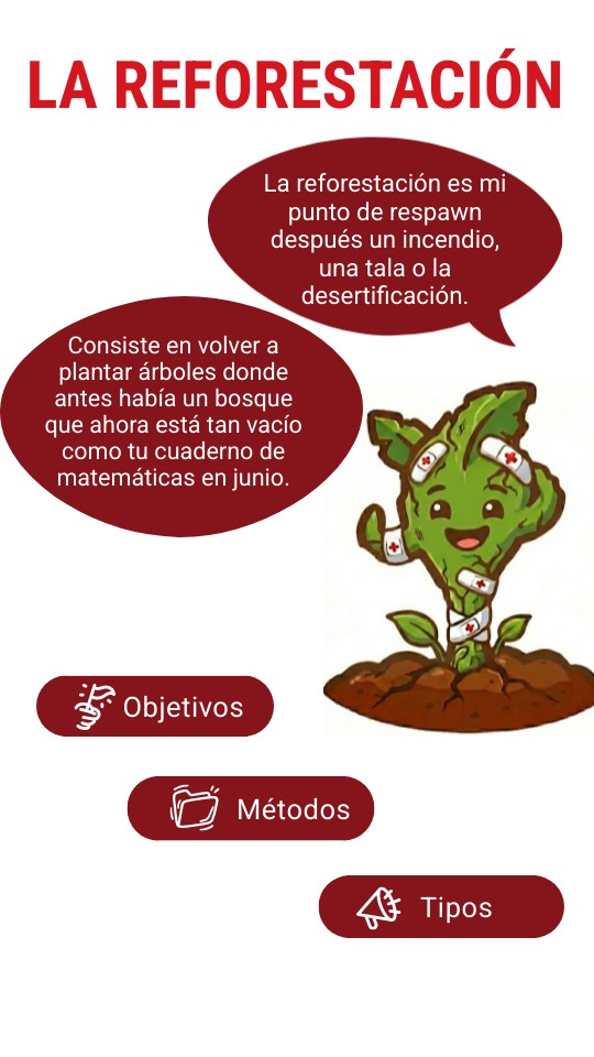 Consiste en volver a plantar árboles donde antes había un bosque que ahora está tan vacío como tu cuaderno de matemáticas en junio.
