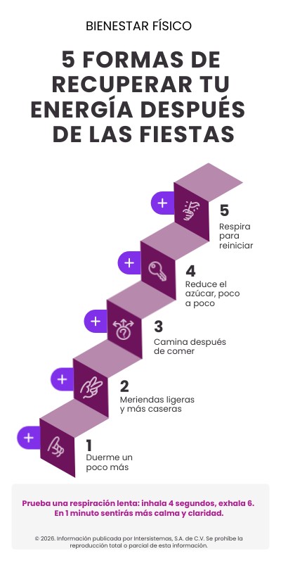 Tu cuerpo viene de días intensos. Regálate 30–60 minutos extra de sueño durante la primera semana del año.