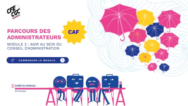 Bienvenue dans votre module consacré au conseil d’administration des caisses d’allocations familiales. C’est dans cet organe de gouvernance que siègent les représentants CFE-CGC. Ensemble, nous allons décrypter son rôle et son fonctionnement, pour comprendre comment les administrateurs peuvent agir concrètement pour les allocataires et les familles de leur territoire.