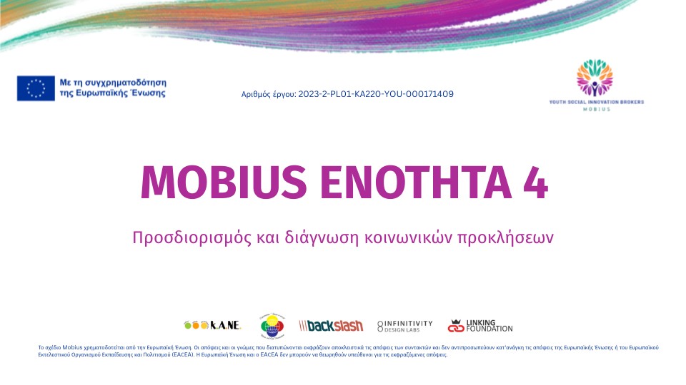 Το σχέδιο Mobius χρηματοδοτείται από την Ευρωπαϊκή Ένωση. Οι απόψεις και οι γνώμες που διατυπώνονται εκφράζουν αποκλειστικά τις απόψεις των συντακτών και δεν αντιπροσωπεύουν κατ'ανάγκη τις απόψεις της Ευρωπαϊκής Ένωσης ή του Ευρωπαϊκού Εκτελεστικού Οργανισμού Εκπαίδευσης και Πολιτισμού (EACEA). Η Ευρωπαϊκή Ένωση και ο EACEA δεν μπορούν να θεωρηθούν υπεύθυνοι για τις εκφραζόμενες απόψεις.
