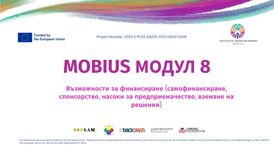 За да превърнем една социална идея в реалност, се нуждаем не само от вдъхновение и енергия, но и от стабилна финансова подкрепа. В този модул ще научим какви видове финансиране съществуват – от безвъзмездни средства и инвестиции с кауза до групово финансиране. Ще развием умения за подготовка на силно предложение, което да убеждава и вдъхновява. И най-важното – ще видим как да измерим реалното въздействие на нашия проект.