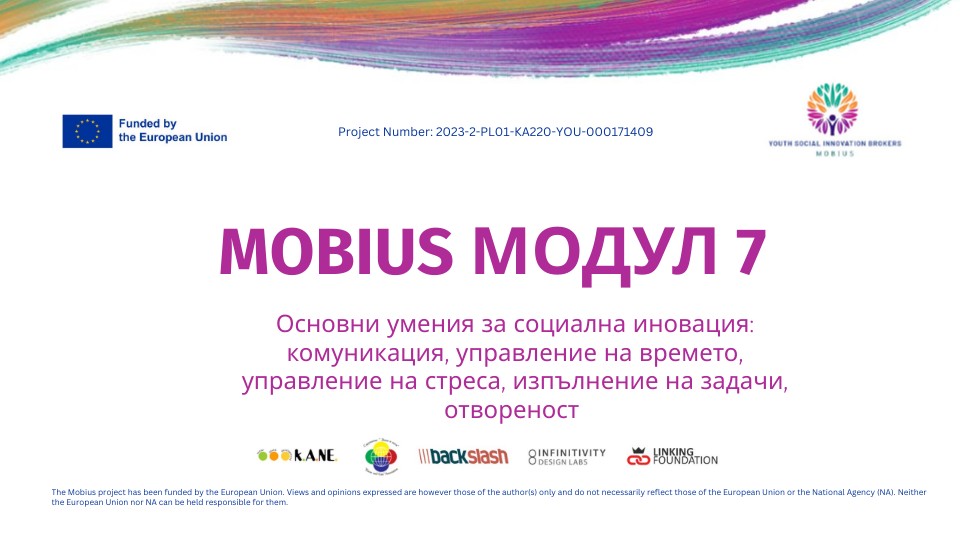 Основни умения за социална иновация: комуникация, управление на времето, управление на стреса, изпълнение на задачи, отвореност