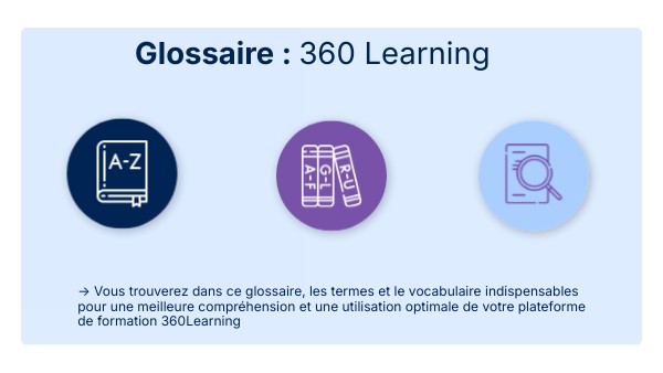 -> Vous trouverez dans ce glossaire, les termes et le vocabulaire indispensables pour une meilleure compréhension et une utilisation optimale de votre plateforme de formation 360Learning
