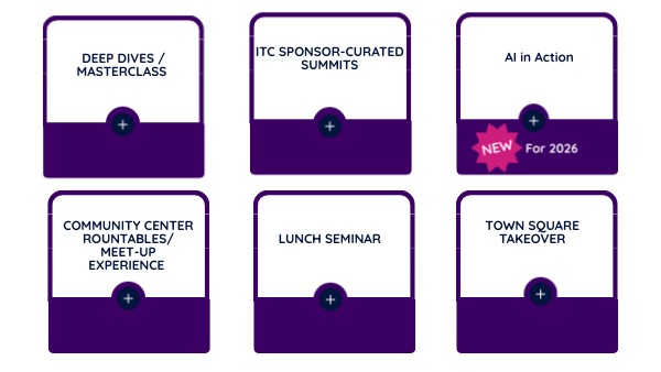 The ITC Community Center is a dedicated space on the expo floor for conversation, connection, and community-led discussion. Designed to serve niche audiences and affinity groups, it hosts meetups and roundtables that bring people together around shared interests, challenges, and experiences. These sessions are topic- or community-focused and built for participation rather than presentation. Formats range from facilitated roundtable discussions to informal gatherings, creating space for honest dialogue, peer exchange, and practical insight in a more accessible, inclusive setting.
