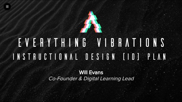 Using findings & design considerations from EV's Learning Experience (LX) Program Redesign Plan, this Instructional Design (ID) Plan: • Outlines the scope of this ID plan for EVERYTHING VIBRATIONS' (EV) digital learning program redesign* Learning Outcome 1: Attune | Module 1: Realize Your Calling Asynchronous Multimedia eLearning Resource ("Interactive Workshop") built using Genially eAuthoring tool • Analyzes & refines the target audience, learner personas, learning outcome, & content map based on the focal modality • Provides & details the Wireframe, Screenplan, Storyboard, & Prototype These components will guide the development phase towards offering meaningful, flexible, & impactful learning experiences to meet the diverse needs, motivations, & goals of the target audience