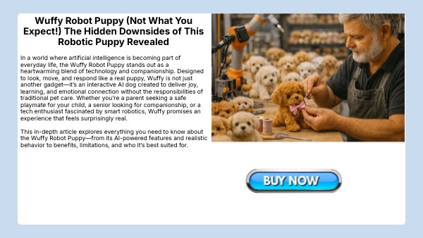 In a world where artificial intelligence is becoming part of everyday life, the Wuffy Robot Puppy stands out as a heartwarming blend of technology and companionship. Designed to look, move, and respond like a real puppy, Wuffy is not just another gadget—it’s an interactive AI dog created to deliver joy, learning, and emotional connection without the responsibilities of traditional pet care. Whether you’re a parent seeking a safe playmate for your child, a senior looking for companionship, or a tech enthusiast fascinated by smart robotics, Wuffy promises an experience that feels surprisingly real. This in-depth article explores everything you need to know about the Wuffy Robot Puppy—from its AI-powered features and realistic behavior to benefits, limitations, and who it’s best suited for.