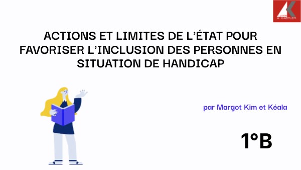 1) définition handicap et inclusion 2) Que fait l'état pour favoriser l'inclusion des personnes en situation de handicap? 3) PRÉSENTATION DE LA LOI DE 2005 4) Inclusion du logement / dans les transports / professionnelle et scolaire 5) conclusion