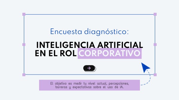 Una plantilla de encuesta diagnóstico para evaluar el nivel, uso y expectativas sobre la IA en el entorno corporativo. Ideal como pre-encuesta antes de una formación en inteligencia artificial para equipos de empresa, marketing o e-learning.