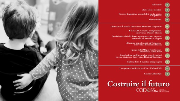 Co-progettazione avviata:Accanto agli appalti, che restano il cuore dell’attività di Codess FVG, ha continuato a crescere anche l’area progettuale volta a dare risposte al territorio. Sempre più spesso, infatti, Comuni ed Ambiti ci hanno coinvolto nella costruzione e nell’animazione di interventi dedicati alle comunità. In questa direzione vanno molti degli incarichi e affidamenti ricevuti: