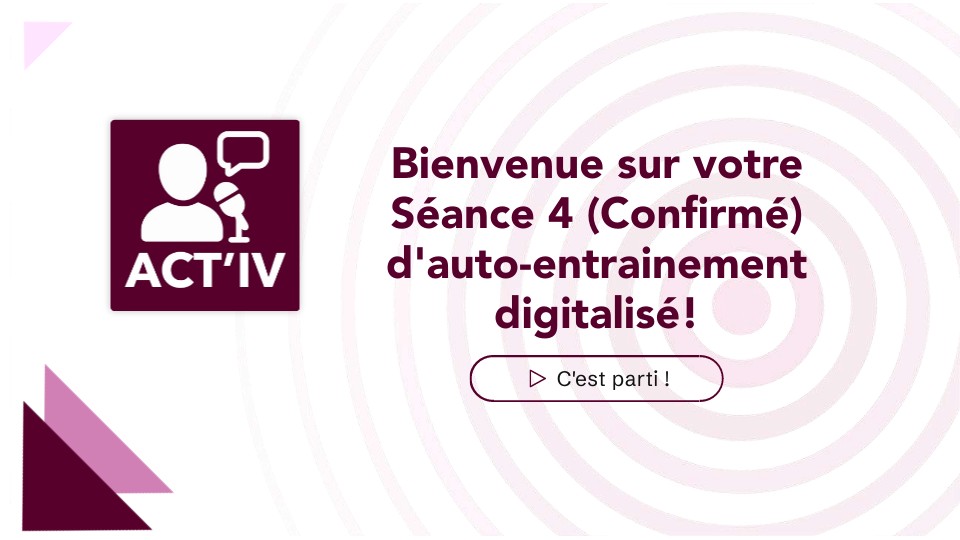 Bienvenue sur votre Séance 4 (Confirmé) d'auto-entrainement digitalisé!