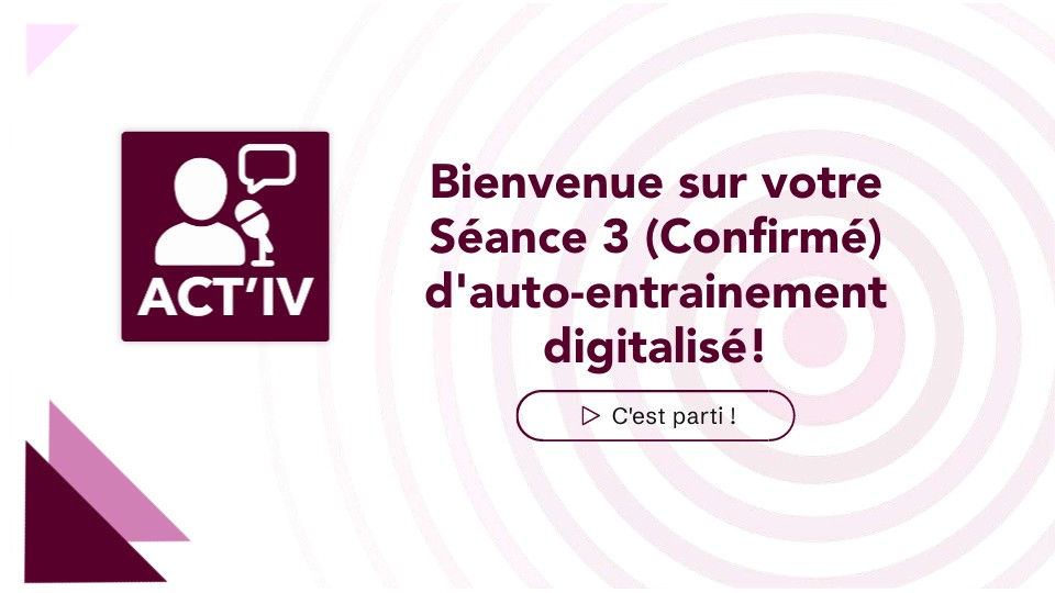 Bienvenue sur votre Séance 3 (Confirmé) d'auto-entrainement digitalisé!