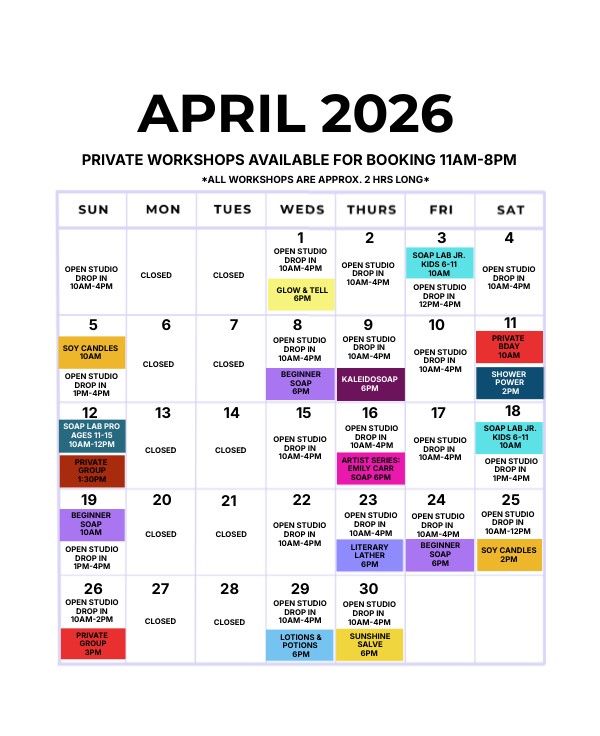 PRIVATE WORKSHOPS AVAILABLE FOR BOOKING 11AM-8PM