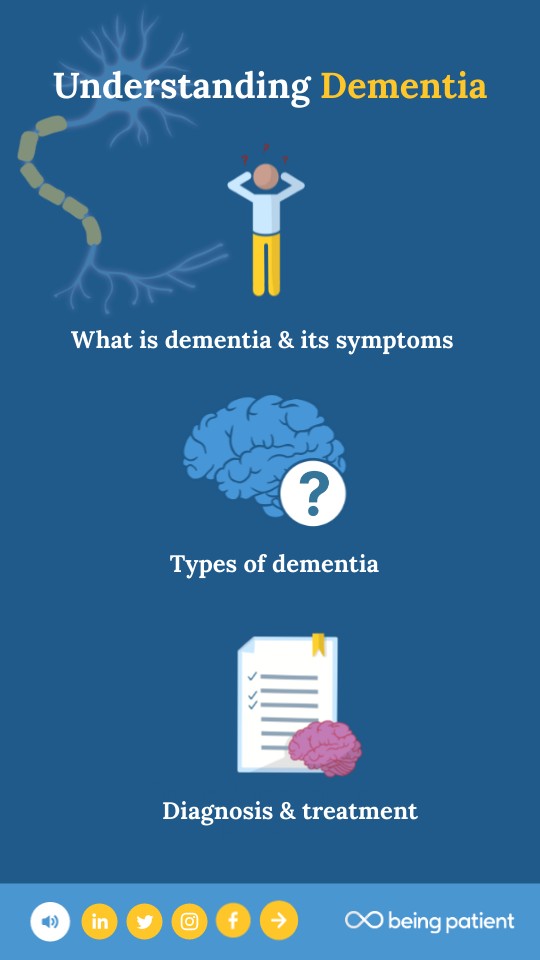 Dementia is an umbrella term for a group of symptoms affecting memory, thinking, and behavior. These symptoms include memory loss, problems with reasoning, planning, and judgement, language and speech difficulties, and behavioral changes, to name a few.