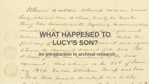 Know ye all men by these presents that I, Henry I. Van Middlesworth of the Township of Hillsborough in the County of Somerset & State of New Jersey, for and in consideration of the faithful service of my female negro slave named Lucy aged about twenty two years, and for divers other good causes & considerations me hereunto moving, have emancipated manumitted & set free, & by these presents do manumit emancipate and set free, the aforesaid female slave named Lucy. In witness whereof I have hereunto set my hand and seal the first day of April in the year of Our Lord one thousand eight hundred and twenty three. Henry Van Middlesworth Sealed & delivered in presence of P. D. Vroom Jr.
